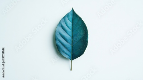 © Bipul Kumar, Obraz premium a single teal leaf split down the middle with one side a lighter shade than the other on a light gray background