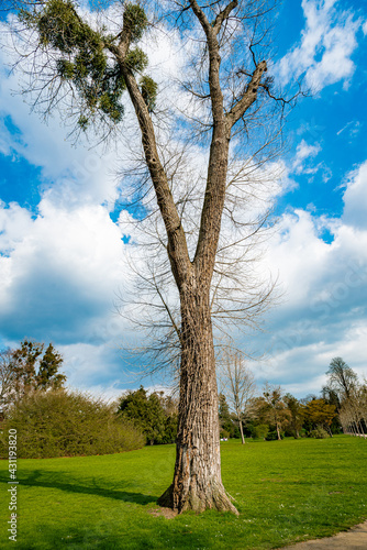 © EwaStudio, Obraz premium A Single Tree Standing Alone with Blue Sky and Grass.