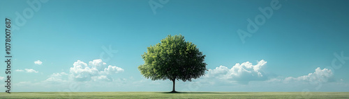 Fototapeta premium A Single Tree Stands Tall in a Field with a Blue Sky and White Clouds Above