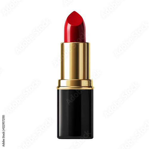 Obraz premium A single tube of vibrant red lipstick with a black and gold case is shown...