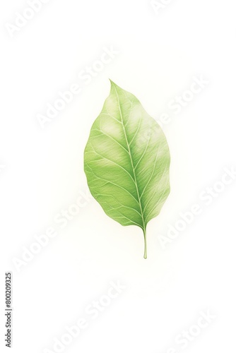© Sirirat, Fototapeta premium A single, vibrant green leaf, delicately placed against a white background, showcasing its detailed vein structure and the subtle gradation of its color, emphasizing its natural elegance and simplicit