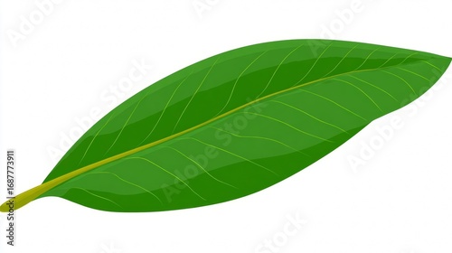 Fototapeta premium A single vibrant green leaf with detailed veins, illustrated on a clean white...