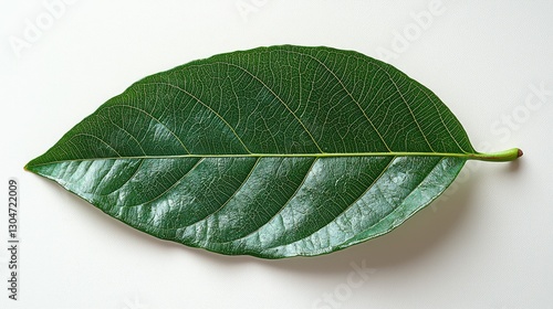 Fototapeta premium A single vibrant green leaf with veins is isolated