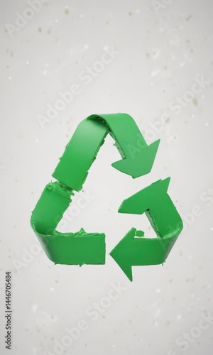 © Nattawat, Obraz premium A single, vibrant green recycling symbol on white background , vivid, circular
