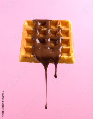 Obraz premium A single waffle drizzled with melted chocolate