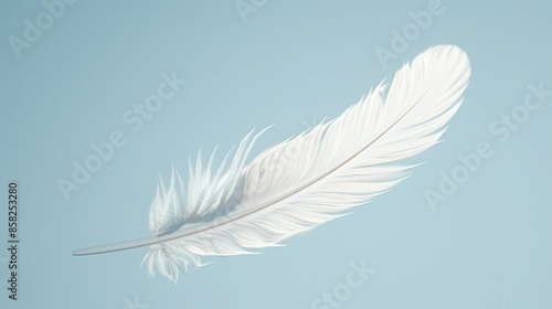 Obraz premium A Single White Feather Floating on a Blue Sky