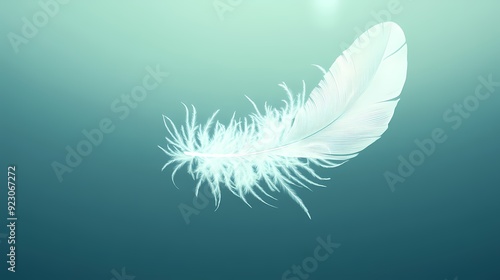 Obraz premium A single white feather floats on a teal background.