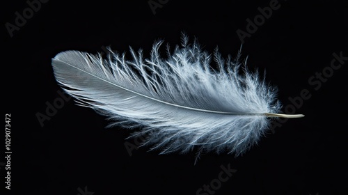 © logyartstudios, Obraz premium A single white feather isolated on a black background.