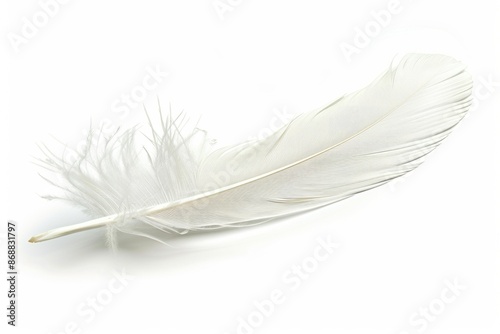 © Fotograf, Obraz premium A single white feather on a plain white background