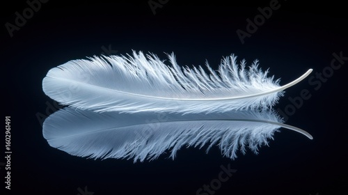 © kintanya, Obraz premium A Single White Feather's Delicate Reflection