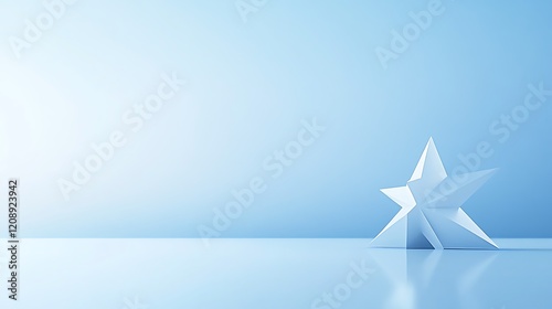 © Hambaa, Obraz premium A Single White Geometric Star on Blue Background