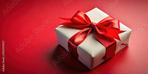 Obraz premium A single white gift box tied with a vibrant red satin ribbon, resting on a...