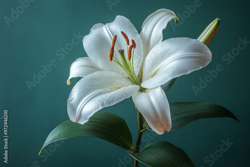 Fototapeta premium A single white lily with a long, elegant stem,