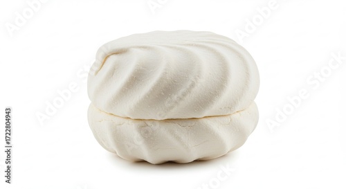 © the, Obraz premium A single white marshmallow with a swirl pattern on a white background.