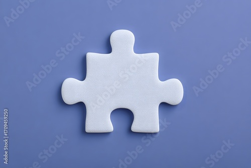 © emplay digital, Obraz premium A Single White Puzzle Piece on a Solid Purple Background.