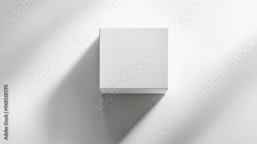 © boy 3344, Obraz premium A single white square box with a seamless lid, photographed with a soft shadow on a clean and modern white background.