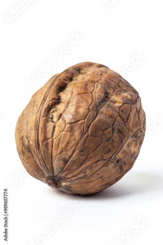 © Ева Поликарпова, Obraz premium A single whole walnut sitting on a clean white surface