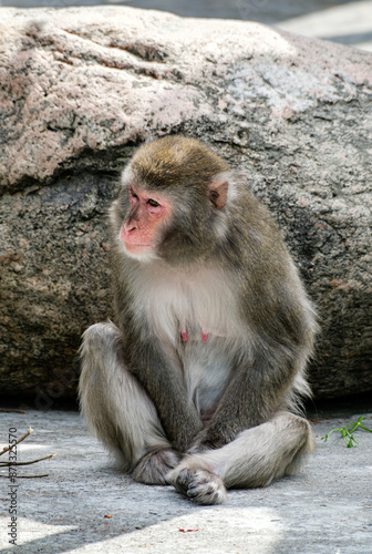 © Александр Малышев, Naklejka premium A sitting Japanese macaque at the zoo