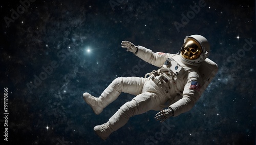 © Haroon, Fototapeta premium A skeleton astronaut floating in space, surrounded by stars, with Earth visible in the background ai_generated
