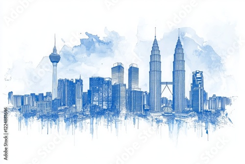 © scorpiries2004, Obraz premium A sketch drawing of Kuala Lumpur, Malaysia city.