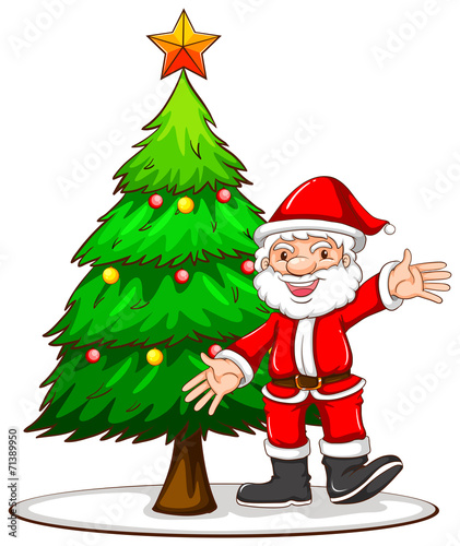 Fototapeta premium A sketch of a Christmas tree with Santa Claus