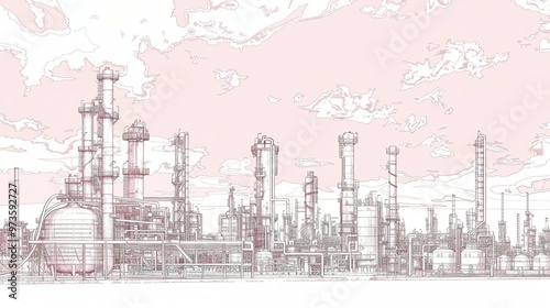 © Ahmad-Muslimin, Obraz premium A Sketch of an Industrial Complex Against a Pink Sky