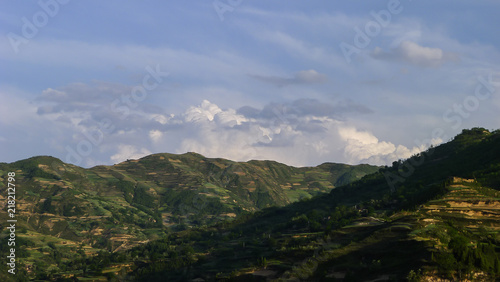 © hunterbliss, Naklejka premium A Sketch of Hills under the Blue Sky