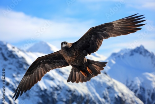 Obraz premium a skua bird soaring against a backdrop of snow-capped mountains