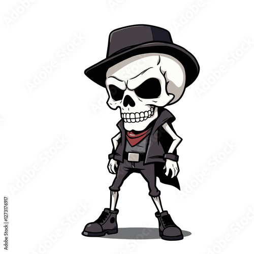 © Business Stock Image, Fototapeta premium a skull emoji wearing a black hat, a red bandana, and black boots.