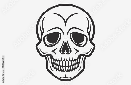 Fototapeta premium A skull photo Line Art drawing with a black face outline white background
