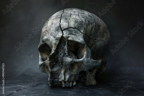 Obraz premium A skull with a broken jaw and missing teeth