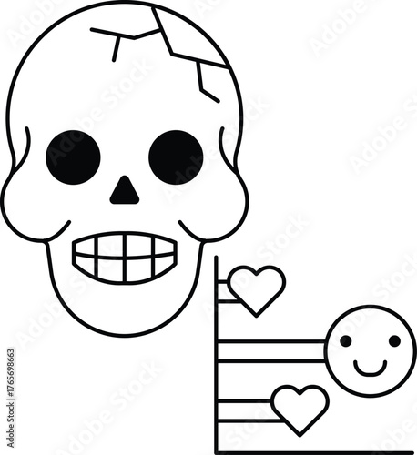 Fototapeta premium A skull with a smiley face and a heart next to it