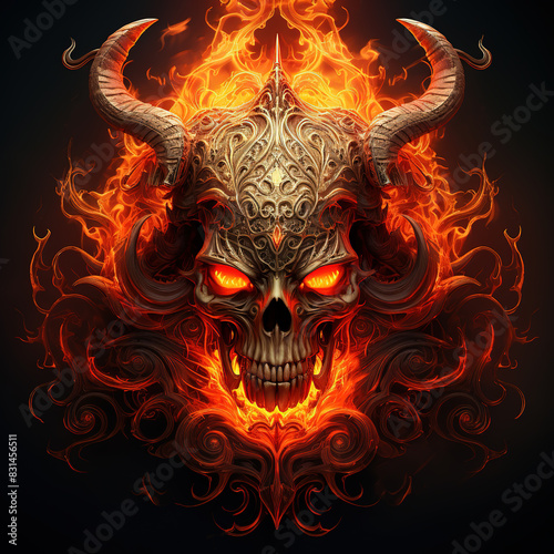 © Oleksandr, Fototapeta premium A skull with horns and a fire