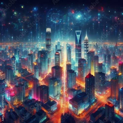 © Nikolai, Fototapeta premium A sky above Night City