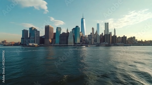 © Rere_Art151, Obraz premium A Skyline View of the Manhattan Cityscape with the Freedom Tower Prominent