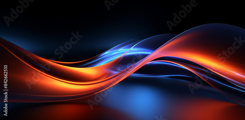 Fototapeta premium A sleek, abstract background with vibrant orange and blue waves on black,...