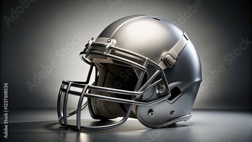 © Nasnunt, Naklejka premium A sleek American Football Helmet sits atop a simple grey background, exuding sporty sophistication and precision engineering design features, football helmet, stadium accessories