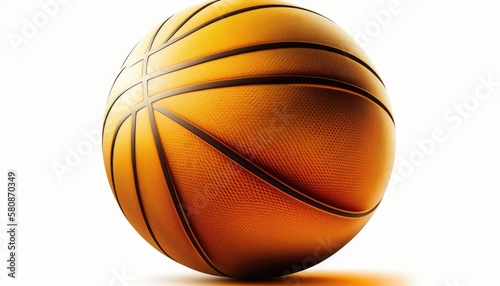 Fototapeta premium A sleek and modern basketball, isolated on a white background. The lighting is bright and crisp, emphasizing the ball's texture and vibrant orange color. The mood is playful, energetic. generative ai