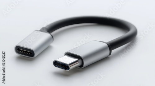 © Sawat, Fototapeta premium A sleek and modern fast-charging USB-A to USB-C cable placed on a white surface.