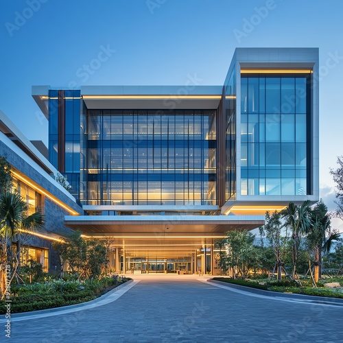 © Nattapat, Obraz premium A sleek and modern hospital with three levels