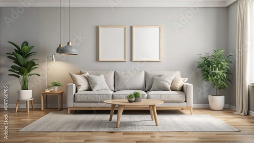 Obraz premium A sleek and stylish living room featuring minimalist decor, neutral tones