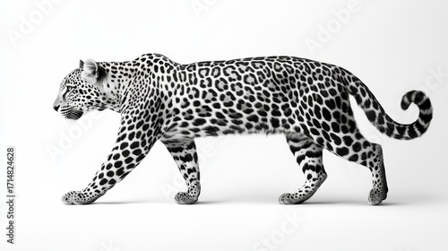 Fototapeta premium "A sleek black-and-white leopard stands in full body form, radiating wild...