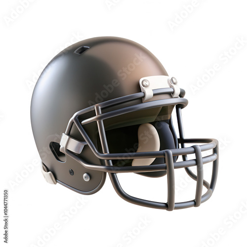 Fototapeta premium A sleek black football helmet showcasing a modern design, perfect for sports enthusiasts and team branding. It's a 3D render model that is optimized for various uses.
