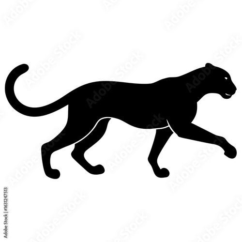 Fototapeta premium A sleek black panther in silhouette is depicted in a dynamic walking pose against a clean white background showcasing its powerful form and elegant stride