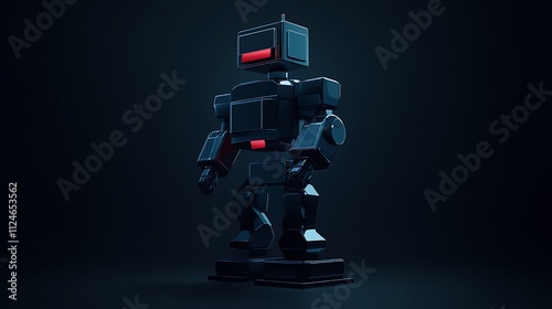 Fototapeta premium A Sleek Black Robot Stands Against A Dark Background