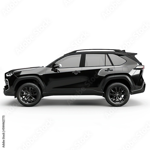 © BersyukurStock, Obraz premium A sleek black SUV displayed in profile view, showcasing modern design and features. isolated on white background