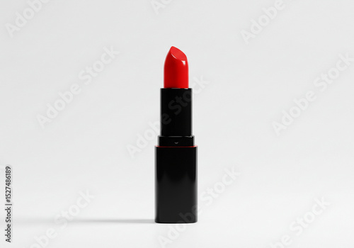 © Muhammad, Obraz premium A sleek black tube of red lipstick standing upright against a plain white background in a studio shot