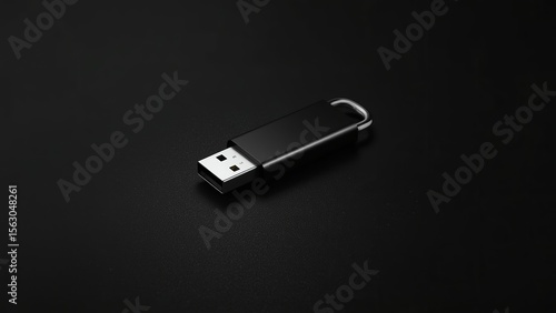Fototapeta premium A sleek, black USB flash drive resting on a dark surface, emphasizing modern technology and minimalism.