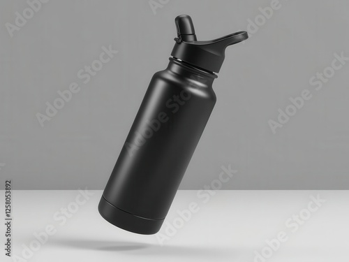 Fototapeta premium A sleek black water bottle against a minimalist gray background.