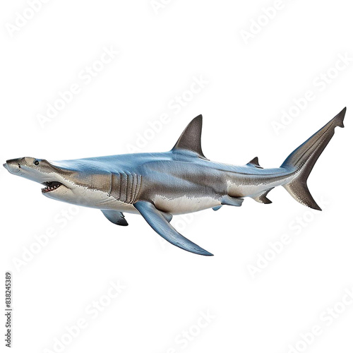 Naklejka premium A sleek, blue shark with a pointed snout swims through the water. Its sharp...